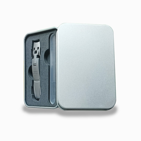 2-Piece Universal Oblique Nail Clippers with Bright Nail File Customizable Logo Stainless Steel Aluminum Box for Fingers